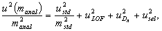 - неопределенности взвешиваний веществ и растворов, т.е. погрешность используемых весов. При получении результатов по разности взвешиваний вклад неопределенности результата взвешивания, как правило, вычисляют по формуле