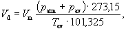 где Vm - объем отобранного газа, не приведенный к нормальным условиям, м3; patm - атмосферное давление во время отбора пробы, кПа; pav - среднее давление отбираемого газа, измеренное перед измерителем объемной скорости потока, кПа; Tav - средняя температура отбираемого газа, измеренная перед объемным расходомером, К. 9.4 Массовая концентрация газообразных фтористых соединений ρHF,dry в пересчете на фтористый водород в сухом отходящем газе при нормальных температуре и давлении Массовую концентрацию газообразных фтористых соединений в пересчете на фтористый водород в сухом отходящем газе при нормальных температуре и давлении ρHF,dry, мг/м3, вычисляют по формуле