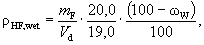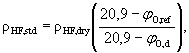 где ωW - среднее содержание водяного пара в отходящем газе в плоскости отбора проб во время отбора проб, %. 9.8 Массовая концентрация газообразных фтористых соединений в пересчете на фтористый водород во влажном отходящем газе при нормальных температуре и давлении с поправкой на базовое значение объемной доли кислорода ρHF,weto Массовую концентрацию газообразных фтористых соединений в пересчете на фтористый водород во влажном отходящем газе при нормальных температуре и давлении с поправкой на регламентированное значение объемной доли кислорода ρHF,weto, мг/м3, вычисляют по формуле