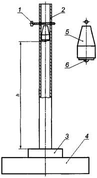 массой 1 кг; 6 - ударная головка диаметром 25 мм из закаленной стали; h -