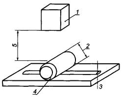 При этом стальной стержень должен находиться на образце в условиях,