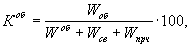 где Wоб, Wсв, Wпрч количество воды, соответственно: используемой в обороте *, свежей, поступающей в системы водоснабжения с сырьем и др., м3; *) Количество использованной за определенный период оборотной воды равно суммарному расходу за этот период в линии ее отвода после повторного /многократного/ использования или суммарному расходу в линии подачи ее на производство за вычетом воды, поступающей в систему на подпитку [28]. - процент безвозвратного потребления и потерь свежей воды (Ксв) рассчитывается по формуле: