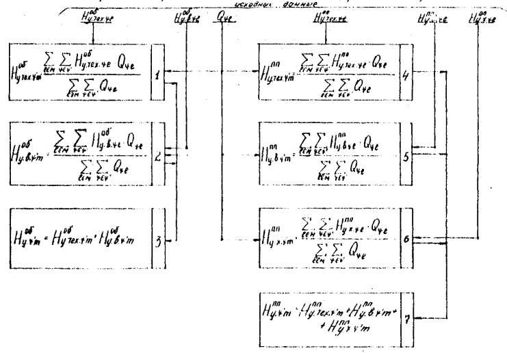 3.9.9. В случае расчета укрупненной нормы (Ну.ψ) водопотребления по ряду предприятий /или по отрасли/, выпускающих однородную продукцию, причем на каждом предприятии норма на эту продукцию рассчитывается как средневзвешенная величина, формула расчета укрупненной нормы водопотребления будет иметь вид: