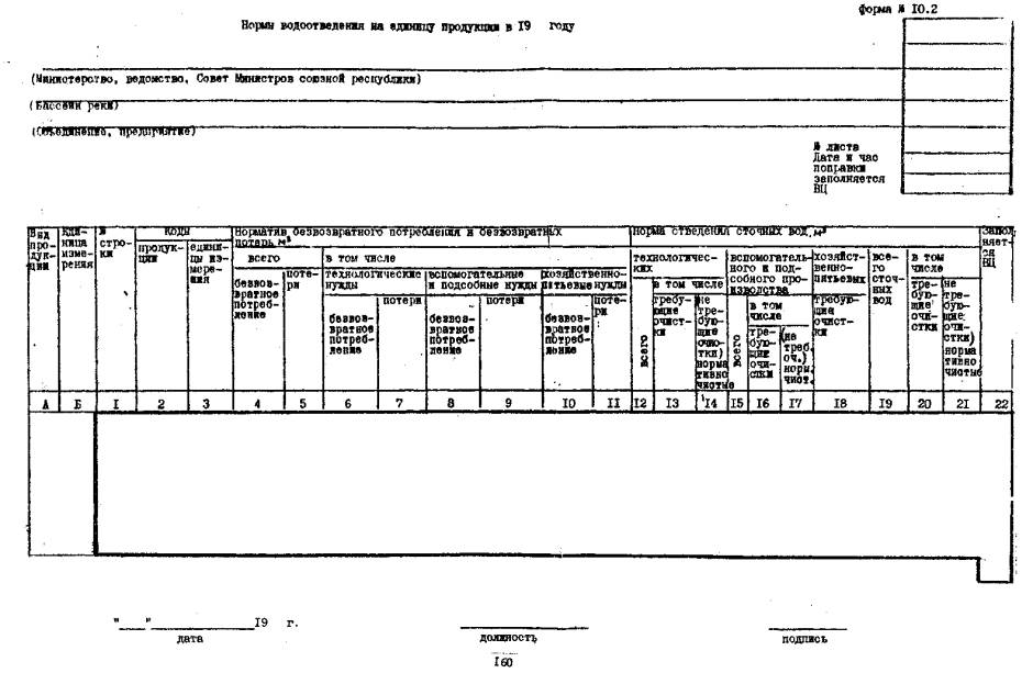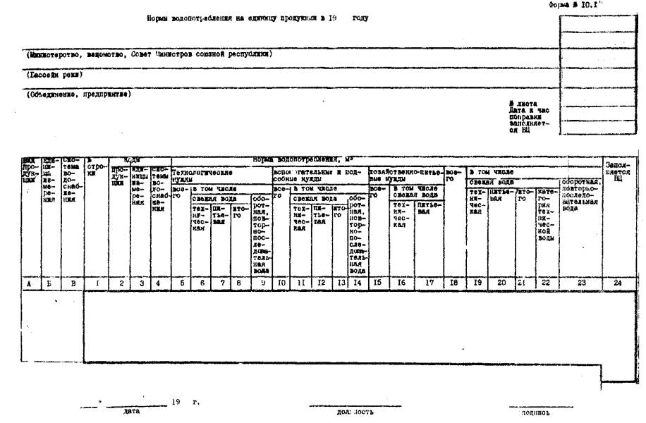 Примечание: - Выходная информация расчета укрупненных норм потребления свежей воды на единицу продукции на уровне Госплана СССР (госплана союзной республики).