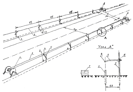 * В зависимости от темпов и условий работ строительная организация должна иметь в наличии комплект струн с принадлежностями примерно на 6 - 8 км струны, считая в одну линию.