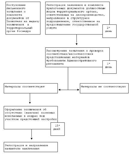 Примечание: полная информация о почтовых адресах, телефонах территориальных органов Роснедра находится на сайте www.rosnedra.com. Приложение 2Блок-схема последовательности действий при предоставлении государственной услуги по выдаче заключений об отсутствии полезных ископаемых в недрах под участком предстоящей застройки