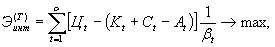 где Zt - потребительная стоимость, включающая извлекаемую ценность основного и попутных полезных ископаемых, а также возможный эффект от использования всего комплекса ресурсов земных недр, руб.; Kt - капитальные вложения в t-ом году, руб.; Ct - текущие эксплуатационные затраты без амортизационных отчислений на реновацию в t-ом году, руб.;