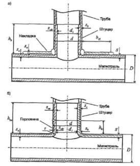 - в сварном тройнике с отношением d/D £ 0.5, а также в штампованном (штампосварном) тройнике