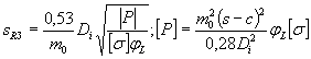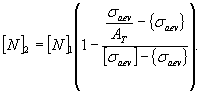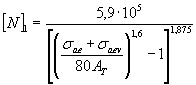 где аf - максимально допустимый радиус полукруговой трещины, соответствующий половине номинальной толщины стенки элемента. Для оценочных расчетов можно принимать [saev] = 70 МПа и {saev} = 30 МПа. Примечание. Допущение о полукруговом фронте трещины идет в запас прочности, если ее радиус равен полудлине, определенной на поверхности элемента. 6.3.4. Расчетное число полных циклов должно быть меньше допускаемого: где [N] в зависимости от амплитуды вибронапряжений и марки материала определяется по формулам (6.12)-(6.14). При saev £ {saev} - для углеродистой и легированной стали