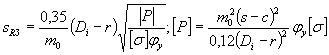 3.4.7. Если в сварных тройниках или врезках номинальная толщина стенки штуцера или присоединенной трубы sb равна sob+c то наибольший внутренний диаметр штуцера тройника di, при котором не требуется дополнительного укрепления (SA = 0) вычисляется по формуле