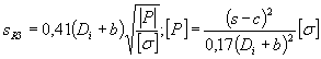 Если sRЗ получается менее sR при j = 1.0, то sRЗ = sR. 3.5.7. Расчетная толщина и допустимое давление для эллиптической заглушки с центральным отверстием при 0.5 ³ h/D ³ 0.2 и 0.1 ³ (s - c)/D ³ 0.0025 и di/(D - 2s) £ 0,6 (рис. 3.5,б,в,г)