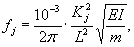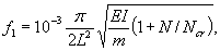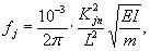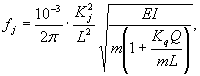 где Ncr = 10-6p2EI/L2 - критическая нагрузка при сжатии стержня (Н). Частотные коэффициенты Kj для вычисления собственных частот колебании трубопровода с одним пролетом