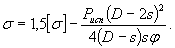 где s и sR соответственно номинальная и расчетная толщины стенок магистрали, a sRD берется как наибольшее из двух значений sR и sR6 определяемых по формулам пунктов 3.1.1 и 3.4.1 для сечения магистрали. При отсутствии внутреннего давления (Р = 0)
