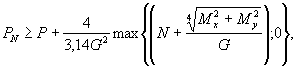 где Mx, Mу - изгибающие моменты, действующие в двух взаимно перпендикулярных плоскостях, проходящих через ось трубы, Н×мм; N - осевая сила, действующая на фланцевое соединение, Н; (при растяжении принимается со знаком «плюс»; при сжатии - «минус»); G -эффективный диаметр прокладки, мм. Назначается в зависимости от ширины и формы сечения прокладки: - для плоских прокладок шириной b < 15 мм, а также для прокладок овального или восьмигранного сечения G - средний диаметр прокладки; - для плоских прокладок с наружным диаметром DH и шириной b > 15 мм