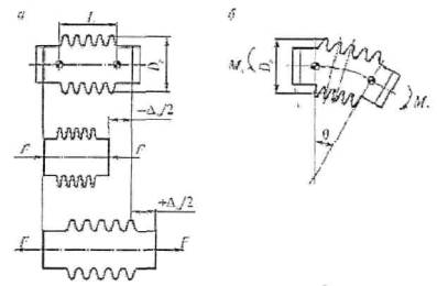 Рис. п. 4.3 Схемы сдвиговых компенсаторов: Перерезывающая сила и изгибающий момент, действующие на трубопровод при сдвиге компенсатора, соответственно равны: