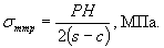 5.4.3. Для вакуумных среднетемпературных трубопроводов на этапе 2 в режимах ПДН и ПДКОН необходима дополнительная проверка на устойчивость согласно п. 5.8. 5.4.4. Величина допустимой нагрузки на оборудование устанавливается заводом-изготовителем. При отсутствии заводских данных, она может быть определена расчеты путем с помощью специальных программ и методов расчета. 5.5 Расчетные напряжения в трубах, отводах, тройниках и врезках5.5.1. Среднее окружное напряжение от внутреннего давления в трубах, отводах и ответвлениях тройников и врезок вычисляется по формуле