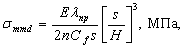 где Kaeth - эффективное значение амплитуды порогового коэффициента интенсивности напряжений при усталости, Kaeth = 1¸2 МПа×м0,5, а0 - радиус полукруговой трещины, а0 = 0,1¸0,5 мм. Наряду с допускаемым в расчетах учитывается безопасный уровень вибронапряжений, для которых при реальных размерах поверхностной усталостной трещины порог усталости не достижим. Для оценки этих напряжений можно воспользоваться условием: