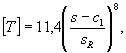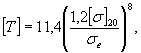 Здесь а= 80 МПа и b = 1200 - для элементов из углеродистой и легированной неаустенитной стали, а= 110 МПа и b = 1000 - для элементов из аустенитной стали. При sae £ 80 МПа назначенный ресурс принимается равным 20 годам. 5. Для высокотемпературных трубопроводов и змеевиков при оценке длительной циклической прочности по определенному расчетом значению sе и по кривым длительной прочности находится время до разрушения [T] в годах, затем по п. 4 определяются значения [Nc] и Nсг. Далее подсчитываются параметр с = Nсг[Т]/[Nc] и величина назначенного ресурса: Примечания. а) При отсутствии справочных данных по длительной прочности материала трубопровода для оценки [Т] можно воспользоваться формулой:
