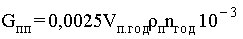 где rп - плотность пара при средних параметрах теплоносителя (давление и температура) по паропроводу, от источника теплоснабжения до границ эксплуатационной ответственности, кг/м3; Vп. год - среднегодовая емкость паропроводов, эксплуатируемых теплосетевой организации, м3; определяется по формуле (2).