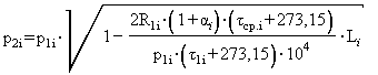 где Р1i - абсолютное давление пара в начале i-го участка, кгс/см2; Li - длина i-го участка паропровода, м; R1i - удельное линейное падение давления i-го участка, кгс/м2×м; ai коэффициент местных потерь давления i-го участка.