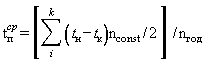 где Рн и Рк - давление пара в начале каждого паропровода и на границах эксплуатационной ответственности организации по периодам функционирования nconst, ч, с относительно постоянными значениями давления, кгс/см2; nгод - продолжительность функционирования каждого паропровода в течение года, ч; k - количество паропроводов паровой сети, шт. средняя температура