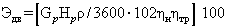 где Gp - расчетный расход теплоносителя, перекачиваемого насосом, м3/ч, принимаемый в зависимости от назначения насоса; Нp - напор, м, развиваемый насосом при расчетном расходе теплоносителя; hнhтр - КПД насоса и трансмиссии, %; r - плотность теплоносителя при его средней температуре за каждый период работы насосного агрегата, кг/м3.