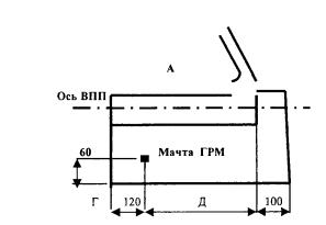 Рис. 6.1. Схема размещения посадочного радиолокатора. 6.3. Требования к РТОРадиомаячные системы посадки 6.3.1. В состав РМС посадки должны входить: курсовой радиомаяк с контрольным устройством; глиссадный радиомаяк с контрольным устройством; маркерные радиомаяки - ближний (БМРМ) и дальний (ДМРМ); ретранслятор дальномера для РМС дециметрового диапазона волн; устройство дистанционного управления и контроля работы радиомаяков. 6.3.2. Включение и выключение радиомаяков, ретранслятора дальномера, а также выбор рабочего комплекта должны осуществляться дистанционно (с командно-диспетчерского пункта). 6.3.3. Аппаратура радиомаяков должна иметь 100%-ный резерв (кроме антенно-фидерных устройств и элементов дистанционного управления). 6.3.4. Переключение с неисправного комплекта аппаратуры радиомаяка на резервный должно осуществляться автоматически. 6.3.5. На аэродроме определяются и маркируются критические зоны КРМ и ГРМ, которые образуют критическую зону РМС. Размеры зоны указаны на рисунках 6.2-6.5. Размеры критической зоны в задней полусфере антенной системы определяются в соответствии с эксплуатационной документацией на конкретный тип оборудования. Зоны ожидания ВС перед выруливанием на ВПП должны находиться вне критической зоны РМС. В местах пересечения внутриаэродромными дорогами критической зоны РМС должны быть установлены дорожные знаки "Проезд без остановки запрещен" и щиты с надписью "Зона РМС. Проезд без разрешения диспетчера запрещен". 6.3.6. Документы, определяющие действия группы руководства полетами, содержат указания о недопущении нахождения в критических зонах КРМ и ГРМ ВС или других транспортных средств с момента выполнения ВС начала снижения по глиссаде.