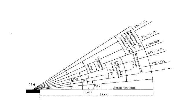 Рис. 6.7. Зона действия ГРМ (ДМВ) I и II категорий в вертикальной плоскости. Таблица 6.6