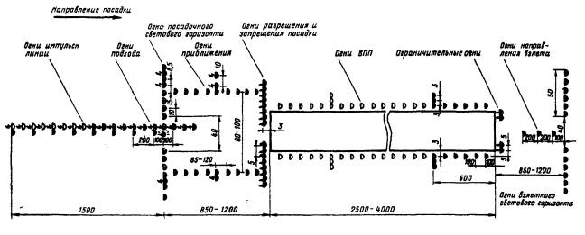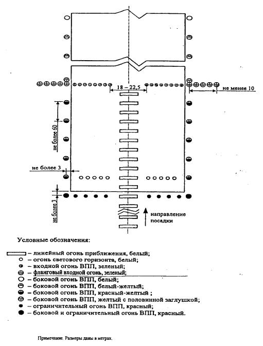 Рис. 7.7. Схема расположения огней ВПП системы ОВИ-1.