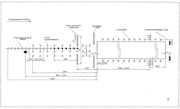 Рис. 7.3. Схема расположения огней ВПП системы ОМИ.