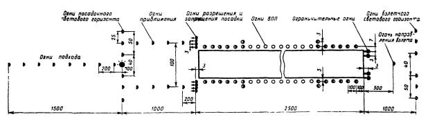 Рис. 7.5. Схема расположения огней приближения системы ОВИ-1 (по центральному ряду).