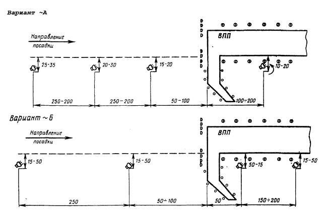 Рис. 7.9. Схема расположения огней приближения систем ОВИ-2 и ОВИ-3.