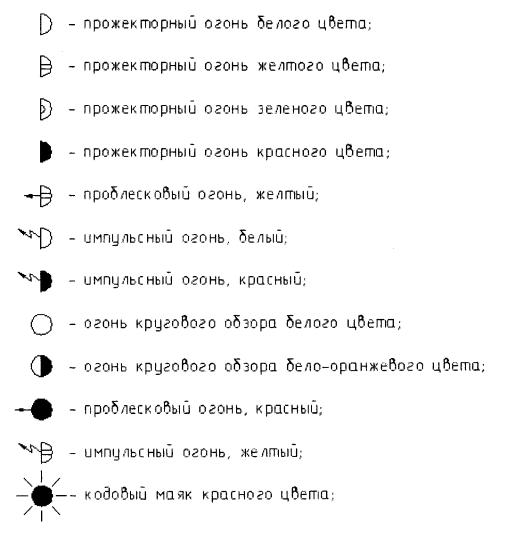 Рис. 7.17. Схема расстановки прожекторов Условные обозначения светосигнального оборудования