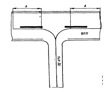 5.2. Маркировка рулежных дорожек с искусственным покрытием5.2.1. На покрытии РД должны быть нанесены маркировочные знаки осевой линии, мест ожидания ВС согласно рисунку 5.1. 5.2.2. Маркировка осевой линии РД на прямолинейных и криволинейных участках, а также на пересечениях РД, должна быть сплошной линией шириной 0,15 м. На прямолинейном участке РД маркировку осевой линии следует наносить по продольной оси. На криволинейном участке РД маркировка осевой линии должна быть нанесена по кривой максимально возможного для данных условий радиуса. Расстояние от внутреннего края РД до маркировочной линии на криволинейном участке должно обеспечивать минимально допустимое удаление колес ВС от края РД при рулении по данному участку. 5.2.3. Маркировка места ожидания ВС должна быть выполнена согласно рисунку 5.1. 5.2.4. Маркировка места ожидания ВС на РД, примыкающей к ВПП, оборудованной РМС, должна располагаться с соблюдением следующих требований: расстояние от осевой линии ИВПП до маркировки места ожидания воздушного судна на РД должно составлять не менее 120 м; маркировка места ожидания воздушного судна на РД не должна располагаться в пределах критических зон РМС; ни одна из частей воздушного судна не должна располагаться в пределах летной полосы. 5.2.5. Маркировка места ожидания ВС на РД, примыкающей к ВПП, не оборудованной РМС, должна располагаться с соблюдением следующих требований: расстояние от осевой линии ИВПП до знака места ожидания воздушных судов должно составлять: не менее 90 м для ИВПП класса I, II; 75 м для ВПП класса III, IV; ни одна из частей ВС не должна находиться в пределах летной полосы. 5.2.6. Маркировочные знаки РД должны быть окрашены в желтый (оранжевый) цвет. 5.3. Маркировка мест стоянок (площадок)5.3.1. Места стоянок (площадки) должны иметь точную геодезическую привязку. На местах стоянок (площадках) должны быть нанесены маркировочные знаки: оси руления ВС (линии заруливания, разворотов и выруливания); Т-образный знак остановки ВС и спецмашин; номер стоянки; границы зон повышенной опасности для обслуживающего ВС авиационным персоналом при гонках двигателей; пути движения спецмашин при обслуживании ВС. 5.3.2. Ось руления ВС на местах стоянок (площадках) на прямоугольных и криволинейных участках маркируется также как РД. 5.3.3. Маркировка проводится в соответствии с утвержденной схемой расстановки ВС на местах стоянок (площадках). При этом интервал между концевыми обтекателями крыльев рядом стоящих ВС должны быть: для ВС с одним авиационным двигателям - не менее 2 м; для ВС с двумя авиационными двигателями - не менее 3 м; для ВС с четырьмя и более авиационными двигателями - не менее 5 м. Для ВС с изменяющейся стреловидностью крыла интервалы определяются при минимальном угле стреловидности. 5.4. Дневные ориентиры и призмы5.4.1. На аэродроме должны быть установлены дневные ориентиры по оси ИВПП между ДПРМ и БПРМ, а также призмы для обозначения боковых границ полосы подхода, боковых границ ИВПП, начала и конца ИВПП, зоны приземления согласно рисунку 5.3. 5.5. Дневная маркировка препятствий и объектов5.5.1. Приведенный в настоящем разделе перечень объектов, подлежащих маркировке, не означает, что не допускается дневная маркировка иных объектов, которые, по мнению эксплуатанта аэродрома, нуждаются в такой маркировке. 5.5.2. Маркируются все искусственные препятстви