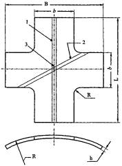 5.5.14 Результаты испытаний фиксируют в протоколе, форма которого приведена в приложении Д. 6 Испытания стандартных образцов на водородное растрескивание6.1 Назначение и сущность метода 6.1.1 Метод предназначен для оценки сопротивления сталей и сварных соединений ВР, вызванного абсорбцией металлом атомарного водорода, выделяющегося в процессе коррозии металла в наводороживающих средах, и последующим образованием молекулярного водорода в микронесплошностях металла. 6.1.2 Сущность метода заключается в проведении испытаний в наводороживающих средах образцов без приложения к ним внешних нагрузок (напряжения возникают от давления молекулярного водорода, выделившегося в микронесплошностях металла образцов) с последующим определением степени повреждения металла образцов трещинами ВР. 6.2.1 Испытания сталей и сварных соединений на ВР осуществляют с применением стандартных образцов, имеющих форму прямоугольной призмы и вырезаемых из оболочечной конструкции через 120° по окружности параллельно оси, как показано на рисунке Е.1 (приложение Е). Образцы из сварных конструкций вырезают так, чтобы их продольная ось располагалась параллельно сварному шву для образцов из основного металла и перпендикулярно сварному шву для сварных образцов. 6.2.2 Образцы должны иметь следующие размеры: длину L = (100±1) мм, ширину В = (20±1) мм, толщину Т, равную толщине стенки изделия, если последняя не превышает 30 мм. При толщине стенки изделия 30 < h £ 88 мм толщина образца должна быть равна 1/3 толщины стенки изделия, при толщине стенки изделия h > 88 мм, толщина образца должна быть равна 1/5 толщине стенки изделия, но не более 30 мм. 6.3 Средства испытаний и вспомогательные устройства Для испытания образцов на ВР применяют коррозионные ячейки в соответствии с 5.3.5 и измерительные средства, отвечающие требованиям 5.3.4. 6.4 Подготовка и проведение испытаний 6.4.1 Перед испытаниями все поверхности образцов обрабатывают в сухом состоянии или в СОЖ шлифовальной бумагой с зернистостью 320, обезжиривают растворителем и промывают спиртом. 6.4.2 Испытания сталей на ВР проводят в соответствии с NACE Standard TM 0284-2003 [4] путем погружения трех одинаковых образцов из исследуемого изделия (стали) в раствор 5 % NaCl+0,5 % СН3СООН в дистиллированную воду, насыщенную сероводородом при температуре (25±3) °С. Водородный показатель раствора рН в начале испытаний - (2,7±1,0), в конце испытаний - не более 4,0. Отношение объема раствора к общей площади поверхности образцов должно быть не менее 3 см3/см2. 6.4.3 Испытания осуществляют в течение 96 ч, отсчет времени с точностью до одной минуты начинают от конца начального часового периода насыщения раствора сероводородом. 6.4.4 После испытаний образцы разрезают на четыре части длиной по 25 мм, как показано на рисунке Е.1 (приложение Е). Каждую часть в месте реза полируют и травят так, чтобы можно было отличить ВР от включений, царапин и других дефектов. 6.5 Обработка результатов испытаний 6.5.1 Измерение геометрических параметров зоны трещин проводят при 100-кратном увеличении в трех поперечных сечениях каждого образца в соответствии с рисунком Е.2 (приложение Е). Полученные значения усредняют для каждых трех одинаковых образцов. При этом трещины, находящиеся на расстоянии друг от друга менее 0,5 мм, считают одной трещиной. В расчеты не включают трещины, находящиеся в пределах 1,0 мм от внутре