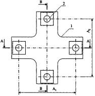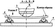 1 - контур образца; 2 - шарнирная опора; 3 - нагружатель; 4 - опорная рама