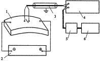 1 - испытуемый модельный образец с надрезом (трещиной); 2 - стабилизированный источник питания постоянного тока (номинальный ток величиной I = 15-20 А); 3 - потенциальные вводы в экранированной оплетке (Æ = 1 - 1,5 мм); 4 - потенциометр постоянного тока; 5 - цифровой вольтметр постоянного тока; 6 - электронный самопишущий потенциометр