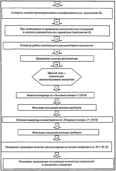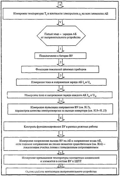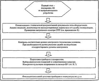 ВведениеНастоящий стандарт определяет порядок технического диагностирования систем постоянного тока энергохозяйства ОАО «Газпром». Цель внедрения - развитие системы технического диагностирования энергетического оборудования, необходимой для перехода к техническому обслуживанию и ремонту объектов энергетических хозяйств по техническому состоянию. Документ разработан в соответствии с «Правилами технической эксплуатации электроустановок потребителей» [1] и СТО Газпром РД 39-1.10-083-2003 «Положение о системе технического диагностирования оборудования и сооружений энергохозяйства ОАО «Газпром». 1 Область применения1.1 Настоящий стандарт устанавливает требования к периодичности, последовательности, составу выполняемых работ при техническом диагностировании систем постоянного тока (СПТ) в структурных подразделениях, дочерних обществах и организациях ОАО «Газпром» и к документам, оформляемым по результатам диагностирования. 1.2 Положения настоящего стандарта обязательны для применения структурными подразделениями, дочерними обществами и организациями ОАО «Газпром», осуществляющими эксплуатацию, проверку, техническое диагностирование, обслуживание и ремонт СПТ. 2 Нормативные ссылкиВ настоящем стандарте использованы ссылки на следующие межгосударственные стандарты: ГОСТ 667-53 Кислота серная аккумуляторная. Технические условия ГОСТ 6709-72 Вода дистиллированная. Технические условия ГОСТ 8865-93 Системы электрической изоляции. Оценка нагревостойкости и классификация ГОСТ 13109-97 Электрическая энергия. Совместимость технических средств электромагнитная. Нормы качества электрической энергии в системах электроснабжения общего назначения ГОСТ 20911-89 Техническая диагностика. Термины и определения ГОСТ 21128-83 Системы электроснабжения, сети, источники, преобразователи и приемники электрической энергии. Номинальные напряжения до 1000 В ГОСТ 23479-79 Контроль неразрушающий. Методы оптического вида. Общие требования ГОСТ 26656-85 Техническая диагностика. Контролепригодность. Общие требования ГОСТ 26881-86 Аккумуляторы свинцовые стационарные. Общие технические условия ГОСТ 27518-87 Диагностирование изделий. Общие требования ГОСТ Р МЭК 896-1-95 Свинцово-кислотные стационарные батареи. Общие требования и методы испытаний. Часть 1. Открытые типы ГОСТ Р МЭК 60896-2-99 Свинцово-кислотные стационарные батареи. Общие требования и методы испытаний. Часть 2. Закрытые типы ИСО 9712:2005 Контроль неразрушающий. Квалификация и аттестация персонала СТО Газпром РД 39-1.10-083-2003 Положение о системе технического диагностирования оборудования и сооружений энергохозяйства ОАО «Газпром» Примечание - При пользовании настоящим стандартом целесообразно проверить действие ссылочных стандартов на территории государства по соответствующему указателю стандартов, составленному на 1 января текущего года, и по соответствующим им информационным указателям, опубликованным в текущем году. Если ссылочный документ заменен (изменен), то при пользовании настоящим стандартом следует руководствоваться замененным (измененным) стандартом. Если ссылочный документ отменен без замены, то положение, в котором дана ссылка на него, применяется в части, не затрагивающей эту ссылку. 3 Термины, определения и сокращенияВ настоящем стандарте применяются следующие термины с соответствующими о