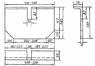 Рис. 2. Металлический щиток с прорезью (переносная опалубка) По окончании нарезки шва ленту обрезают и вытягивают из прорези вибропластины крючком, вибропластину поднимают, очищают от бетона, и рабочий орган холостым ходом возвращают к началу шва. После этого конец ленты окончательно заправляют в бетон и тщательно заделывают гладилкой. В качестве прокладки для швов применяют полиэтиленовую ленту, смотанную в