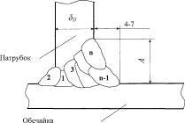 Таблица 6.11 Количество проходов для выполнения кольцевых швов "патрубок - днище", "патрубок - удлинительное кольцо"
