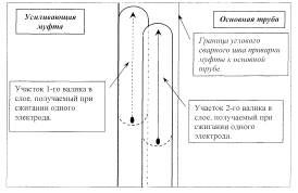 Рисунок 6.9 - Выполнение наплавочного слоя шва "муфта - основная труба" 6.8.4.7 Для обеспечения благоприятного теплового режима сварку слоев выполнять участками ("ступеньками"), на которых один за другим укладываются 2 параллельных валика (рисунок 6.10). Валики выполняются один за другим на длину сжигания электрода.