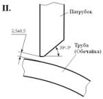 1. Вальцовка обечайки. Сварка продольного шва обечайки (технологический шов) - только для тройника заводского исполнения.2. Сборка и приварка патрубка к трубе (обечайке).3. Выполнение термической обработки обечайки с приваренным патрубком - только для тройника заводского исполнения. |