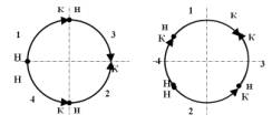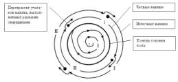 а) б) а) сварка нечетных слоев; б) сварка четных слоев; Н - начало сварки; К - конец сварки; I-II - очередность сварки участков стыка каждым сварщиком. Рисунок 6.5 - Схема выполнения слоев шва при приварке патрубка к обечайке разрезного тройника