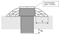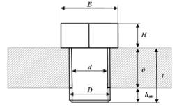 5.3.4 Геометрические размеры гладких чопов диаметром от 8 до 12 мм и от 15 до 40 мм приведены в таблицах 5.2 и 5.3 соответственно. 5.3.5 В качестве резьбовых чопов используют болты по ГОСТ 7798 из стали прочностного класса 4.8 (стали 10, 10 кп) или 4.6 (сталь 20) с резьбой по всей длине. 5.3.6 Конструктивное исполнение резьбовых чопов представлено на рисунке А.5 (приложение А). 5.3.7 Геометрические параметры резьбовых чопов приведены в таблице 5.4. Параметры гладких чопов диаметром от 8 до 12 мм