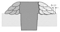 6.8.4.10 Выполненный угловой шов должен иметь выпуклую форму с плавными переходами к основному металлу. Усиление (выпуклость) сварного шва должна быть не более 3 мм (не более 2 мм для участков, выполненных в нижнем положении). Ослабление (вогнутость) сварного шва должна быть не более 1 мм. Облицовочный слой сварного шва должен иметь мелкочешуйчатую поверхность с глубиной волны не более 1,0 мм.