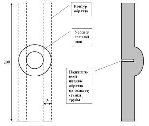 - испытание условно стыкового шва на излом с надрезом - по 1 образцу из допускного сварного соединения.