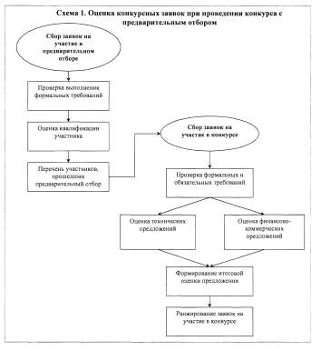 3.2.1 Проверка формальных требований. Поступившие от участников заявки на участие в предварительном отборе должны быть подвергнуты проверке на соблюдение формальных требований, изложенных в документации о предварительном отборе. При такой проверке определяется правильность оформления заявок на участие в предварительном отборе, в том числе наличие всех необходимых документов, а так же полномочия лица, подписавшего заявку. 3.2.2 Оценка квалификации. Для заявок на участие в предварительном квалификационном отборе, удовлетворяющих формальным требованиям документации предварительного квалификационного отбора, проводится оценка соответствия квалификации участников требованиям, содержащимся в документации о предварительном отборе. На этапе оценки квалификации участника осуществляется: 3.2.2.1 проверка правоспособности участников на возможность участия в данном конкурсе и заключения в случае победы договора поставки товаров, выполнения работ или оказания услуг; 3.2.2.2 проверка соответствия требованиям в отношении общего и специального опыта, репутации, финансовой надежности, квалификации персонала, материально-технического обеспечения. Критерии оценки квалификации указаны в п. 4.4. Проверка соответствия участников предварительного отбора обязательным требованиям документации о предварительном отборе может проводиться без привлечения экспертов, силами Организатора конкурса, только при условии тщательной проработки, детального изложения и однозначной трактовки всех обязательных требований в документации о предварительном отборе. При этом Организатор конкурса оставляет за собой право допускать обоснованные незначительные отступления от минимальных показателей критериев, если они не оказывают существенного влияния на возможности участника, связанные с выполнением обязательств по договору. _____________ * О наличии такого права должно быть указано в документации о предварительном квалификационном отборе в общем для всех обязательных требований. 3.2.3 При проведении конкурсов по закупке сложной продукции по решению Конкурсной комиссии оценка квалификации участников может проводиться также балльным методом по оценочным критериям наряду с проверкой соответствия участника ряду обязательных требований (то есть, при принятии решения о применении этого метода для оценки квалификации участников проводится оценка соответствия их требованиям к правоспособности и перечню отборочных критериев, а по установленному перечню оценочных критериев проводится балльная оценка). При этом критерии, способы оценки по ним квалификации и весовые коэффициенты значимости оценочных критериев должны быть зафиксированы в Критериях и методике оценки квалификации. В целях обеспечения беспристрастности в принятии решения о составе группы участников, прошедших квалификационный отбор, рекомендуется в Критериях и методике оценки квалификации (предложения) указывать пороговое балльное значение оценки квалификации участников. Те участники, оценка квалификации которых ниже порогового уровня, считаются не прошедшими квалификационный отбор. 3.2.4 Результат. В результате, для каждого участника предварительного квалификационного отбора делается вывод о том, допускается данный участник к участию в конкурсе или не допускается. Организато