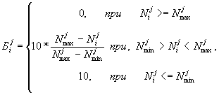 наибольшее и наименьшее значения ( Балл заявки i, соответствующий значению j-го критерия если с ростом значения критерия характеристика предложения улучшается: