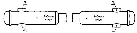 1 - корпус; 2 - фильтрующий элемент; 3 - осевой патрубок входа/выхода нефти; 4 - боковой патрубок входа/выхода нефти; 5 - концевой затвор; 6 - патрубок для контроля давления; 7 - патрубок для установки манометра; В – патрубок для присоединения дренажного трубопровода; 9 - строповое устройство; 10 - опора Рисунок 1 - Горизонтальный фильтр 6.1.2.4 Для извлечения/установки фильтрующего элемента, а также для обеспечения герметизации внутренней полости ФГ относительно внешней среды на концевой части корпуса должен быть предусмотрен быстросъемный затвор. 6.1.2.5 Внутри корпуса должен быть предусмотрен механизм, обеспечивающий установку, извлечение фильтрующего элемента, и устройство для предотвращения смещения фильтрующего элемента в сторону концевого затвора. 6.1.2.6 На ФГ должны быть предусмотрены: - осевой патрубок входа/выхода нефти, соответствующий диаметру присоединяемого трубопровода; - боковой патрубок входа/выхода нефти, соответствующий диаметру присоединяемого трубопровода; - патрубок с установленной запорной арматурой для контроля давления в фильтре перед его открыванием, а также удаление воздуха при гидравлическом испытании; - патрубок для присоединения дренажного трубопровода; - два патрубка для установки манометров, расположенные на патрубках входа и выхода нефти. 6.1.2.7 Правое (Пр) и левое (Л) расположения бокового патрубка принимаются по направлению потока рабочей среды (см. рисунок 2). Рисунок 2 - Расположение боковых патрубков 6.1.2.8 Патрубок для удаления воздуха следует устанавливать в верхней точке корпуса фильтра. 6.1.2.9 Патрубок для присоединения дренажного трубопровода следует устанавливать в нижней точке корпуса фильтра для обеспечения его полного опорожнения. 6.1.2.10 Угол охвата седловой опоры для ФГ должен быть не менее 120°С. 6.1.2.11 ФВ должен представлять собой вертикальный цилиндрический корпус, установленный на опору. Внутри цилиндрического корпуса размещается фильтрующий элемент, с боковых сторон корпуса расположены патрубки входа и выхода нефти. 6.1.2.12 Конструктивное исполнение ФВ приведено на рисунке 3. 6.1.2.13 В верхней части корпуса ФВ должен быть предусмотрен быстросъемный затвор с откидной крышкой в горизонтальном направлении, обеспечивающей герметизацию внутренней полости фильтра относительно внешней среды. Конструкцией фильтра должна быть предусмотрена возможность извлечения и установки фильтрующего элемента без применения передвижных грузоподъемных механизмов. 6.1.2.14 На ФВ должны быть предусмотрены следующие патрубки: - боковой патрубок входа нефти; - боковой патрубок выхода нефти; - патрубок с установленной запорной арматурой для контроля давления в фильтре перед его открыванием, а также удаление воздуха при гидравлическом испытании; - патрубок для присоединения дренажного трубопровода (при наличии системы дренажа), оснащенный в корпусе фильтра сеткой для предотвращения засорения дренажного патрубка и устройства для его промывки; - два патрубка для установки манометров, расположенные на патрубках входа и выхода нефти. 6.1.2.15 По требованию потребителя на ФВ могут быть установлены трубопроводы с запорной арматурой для промывки фильтрующего элемента обратным потоком нефти. 1 - корпус; 2, 3 - боковые патрубки входа и выхода нефти; 4 - фильтрующий элемент; 5 - крышка; 6 - днище с опорами; 7 - патрубок для контроля давл