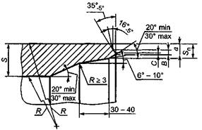 Рисунок 4 - Типы механической обработки патрубков 6.1.4.6 При выполнении механической обработки с внутренним скосом должно выдерживаться соотношение: